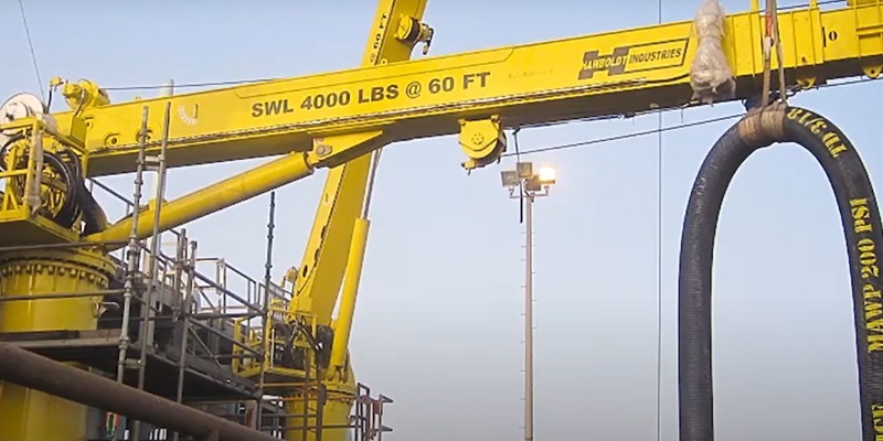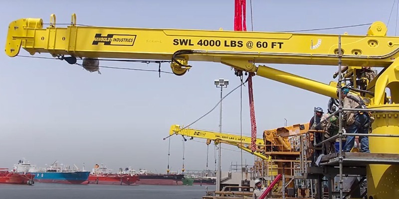 Hawboldt provided a large order of 20-Ton Capacity Hose Handling Marine Cranes complete with dual winches, wireless remote controls, and built in electric hydraulic power units.